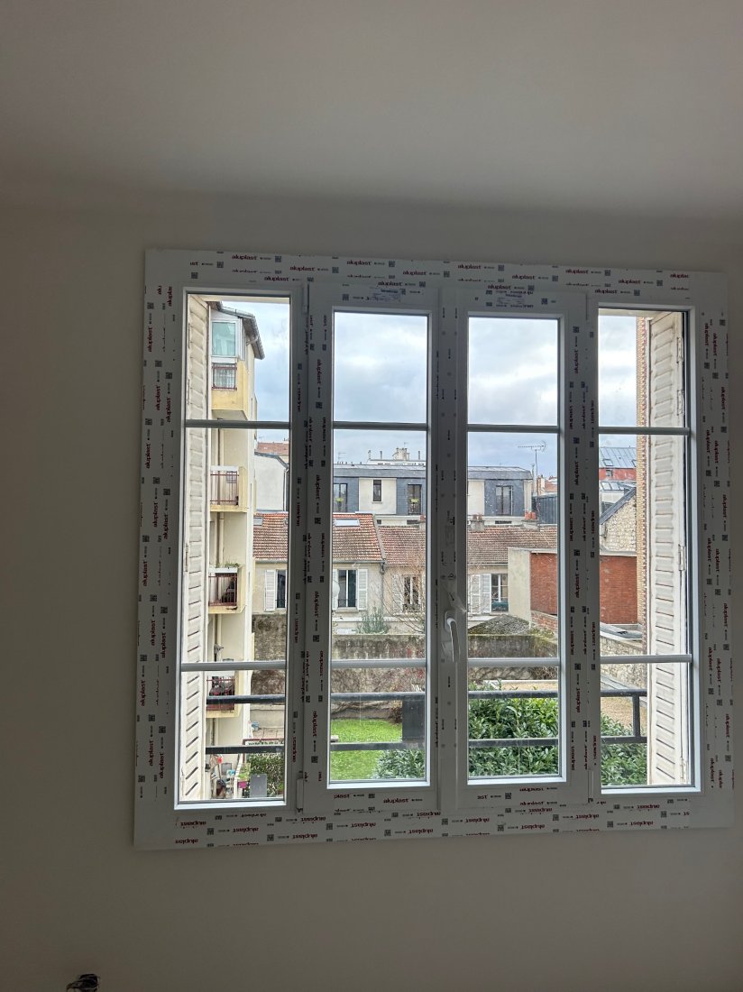 Photo d’une fenêtre neuve en PVC blanc à triple vitrage installée par Marius Filip, expert en rénovation, offrant isolation maximale et finition soignée dans une pièce lumineuse et moderne.