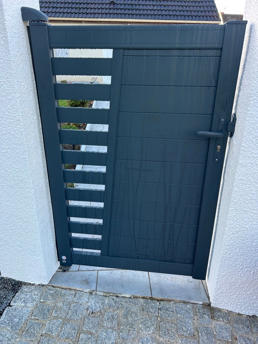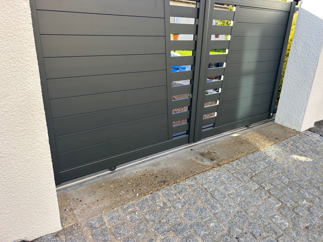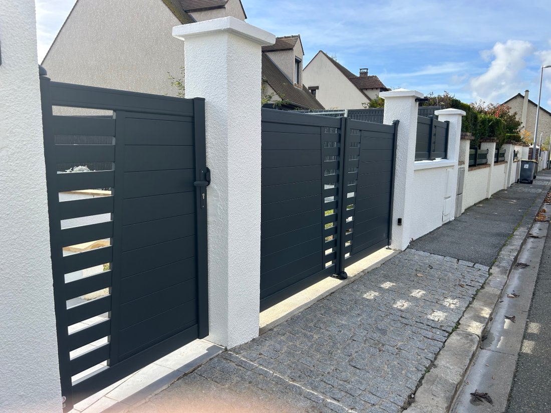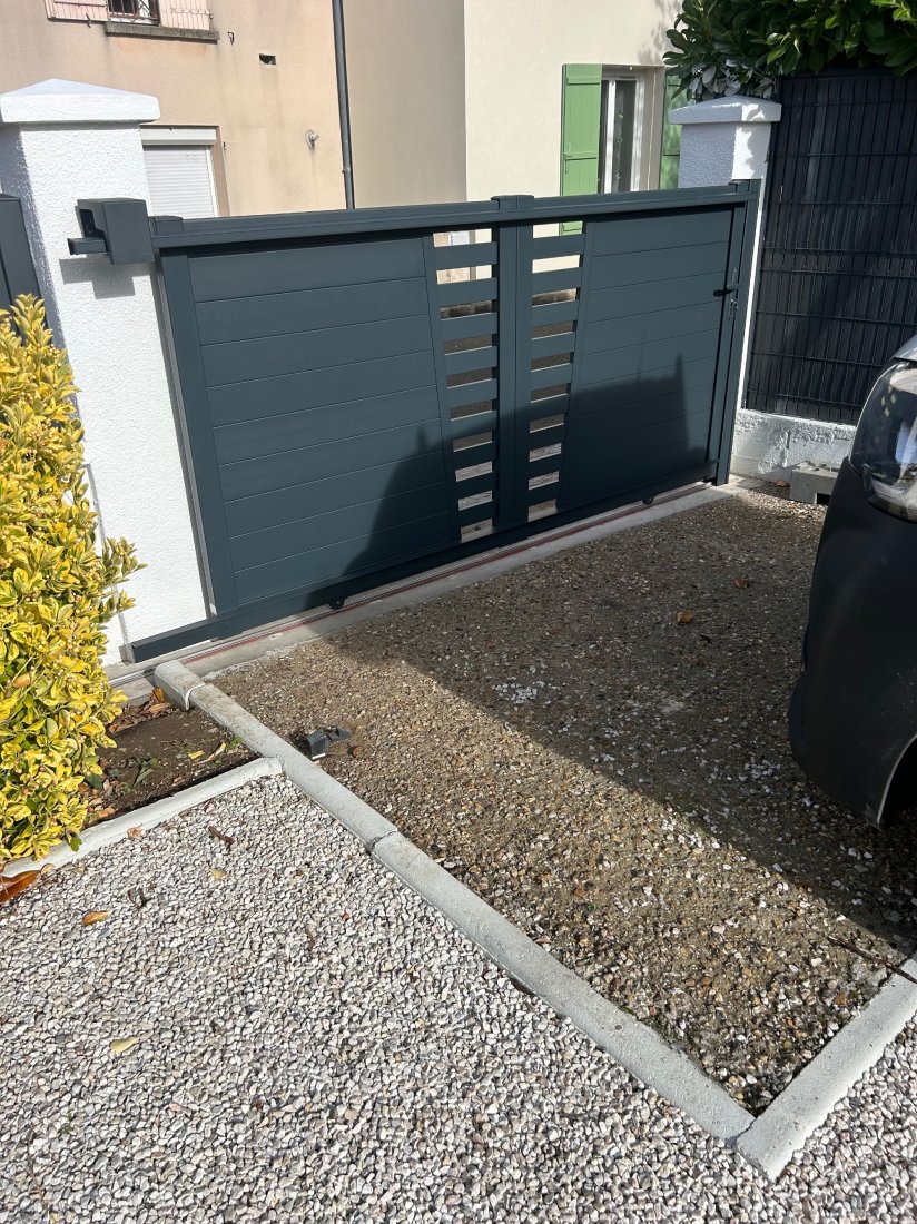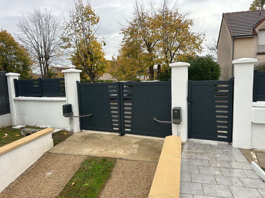 Portail battant motorisé, portail coulissant, portillon et clôture en aluminium gris 7016, installés avec soin par Marius Filip, expert en rénovation. Élégance moderne et robustesse pour sécuriser et valoriser votre propriété.