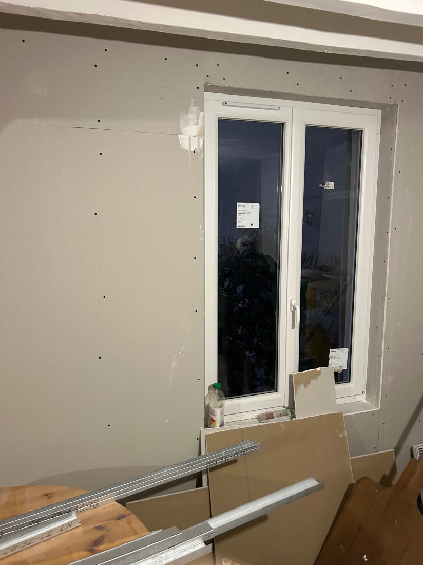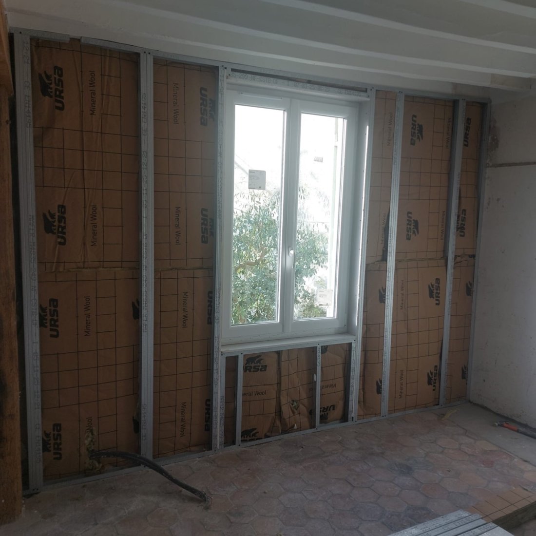 L’objectif principal de ce chantier était d’offrir à nos clients une rénovation énergétique globale, en partant de la dépose de l’ancien placo jusqu’à la mise en œuvre d’une isolation renforcée. Nous avons également remplacé les anciennes fenêtres et la porte par des menuiseries plus performantes, puis réalisé une isolation des murs extérieurs avec de la laine de verre 100 mm et la pose de nouveaux panneaux de placo. Ce projet vise à réduire significativement les déperditions de chaleur, améliorer le confort intérieur et valoriser le bien immobilier.