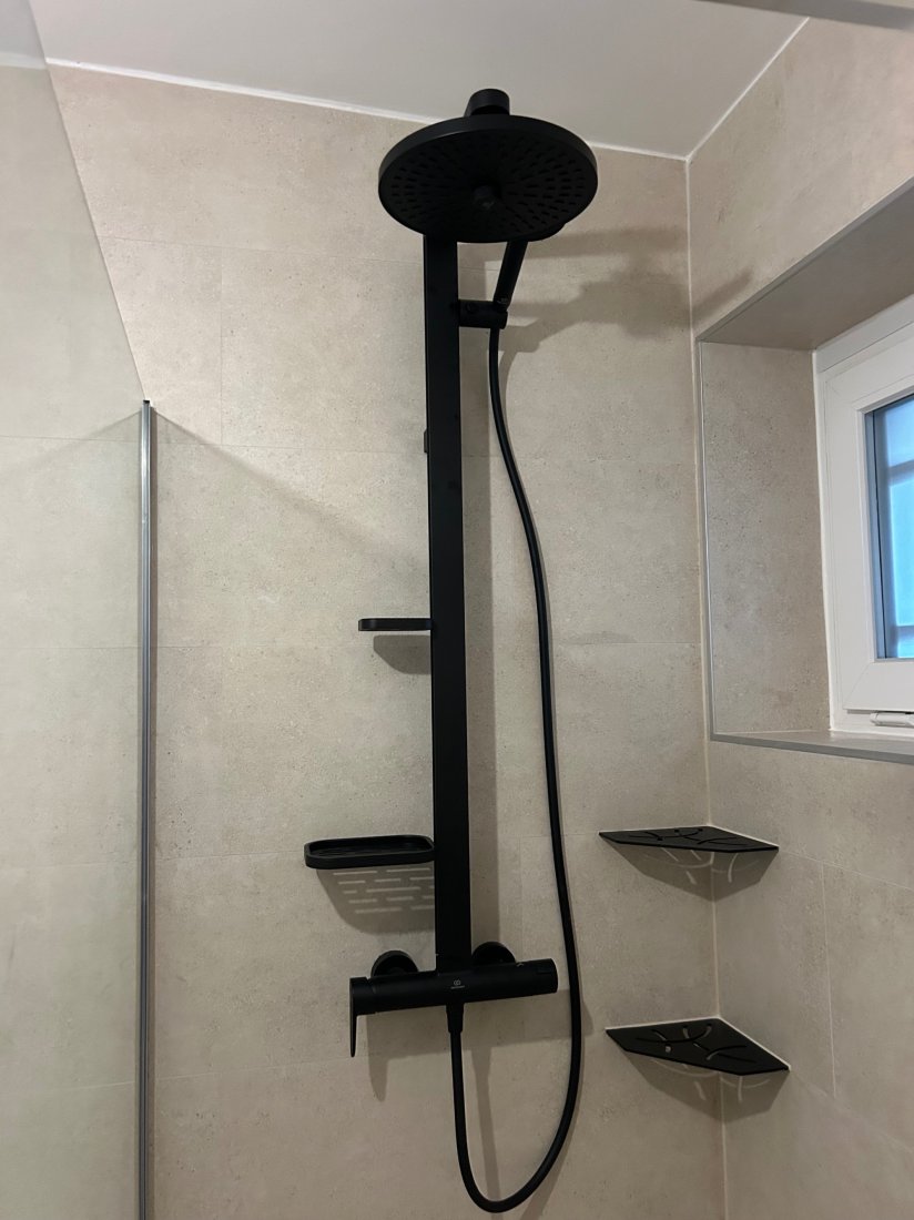 Salle de bain rénovée par Marius Filip : plomberie moderne, carrelage élégant et peinture soignée pour un espace à la fois fonctionnel et esthétique, réalisé avec un savoir-faire d’expert.