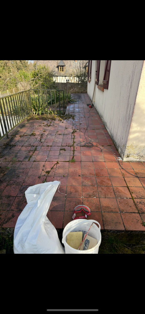 Découvrez l'expertise de Marius Filip en rénovation de terrasse : pose de carrelage sur chape de 10 cm, dépose de l'ancienne chape et ravalement soigné, pour un espace extérieur durable et esthétique.